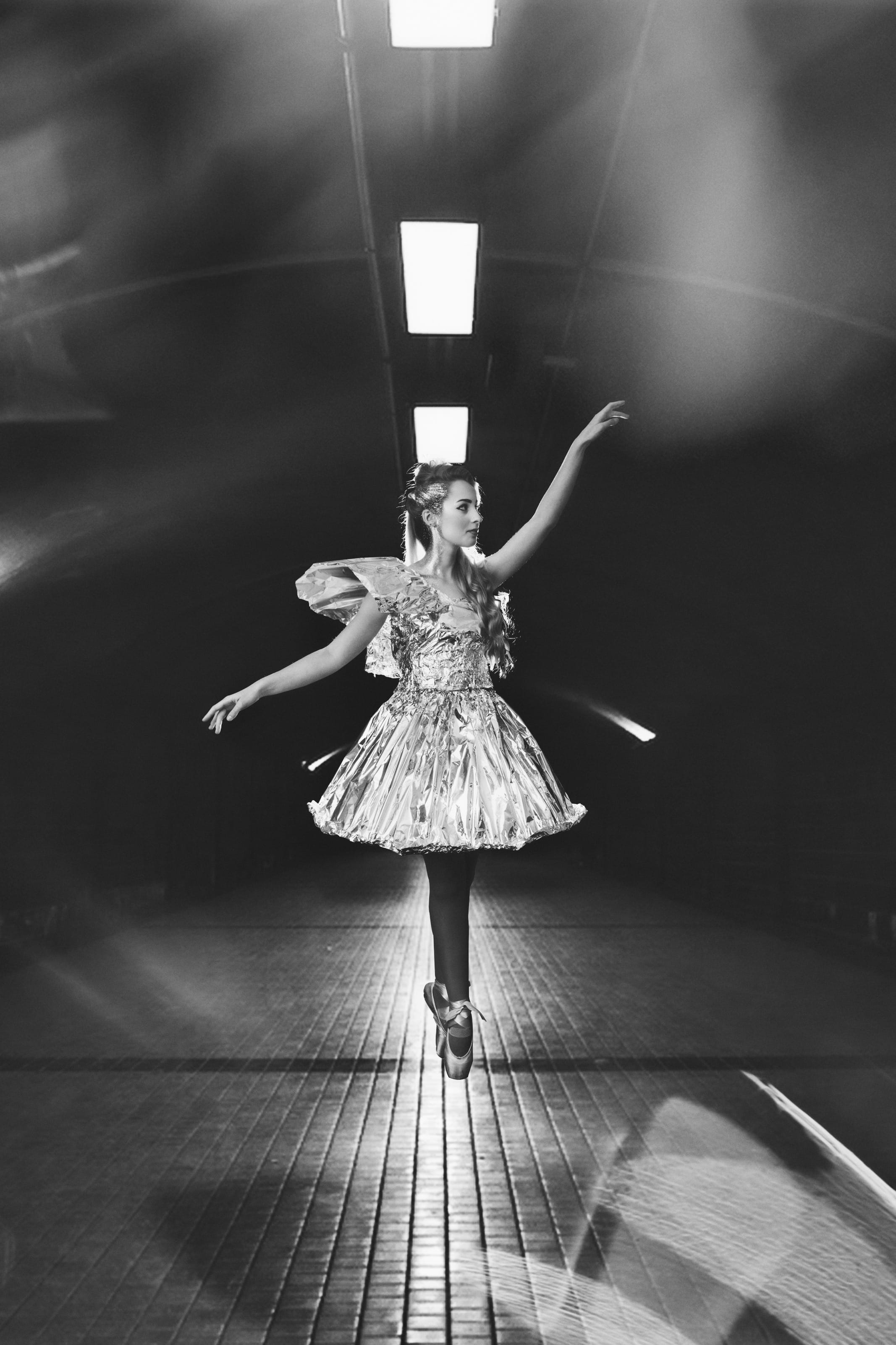 Transforming art into a shimmering performance, the "Metamorphic Glamour" photography project presents a striking visual display of creativity and grace. Featuring a talented ballerina in an unconventional costume made entirely of aluminum foil, this project showcases the beauty of movement, reflection, and light.Through a series of captivating photographs, "Metamorphic Glamour" captures the essence of a ballerina's performance in a unique and unexpected way. With each graceful movement, the ballerina interacts with the surface of the foil, creating a mesmerizing effect that draws the viewer in.